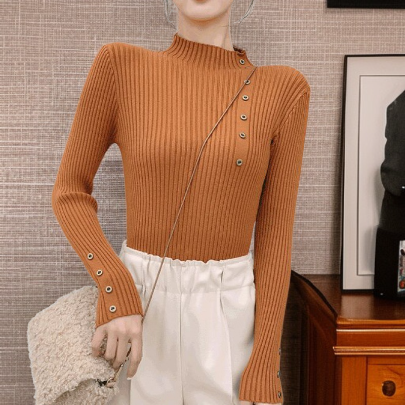 여자 폴라 보카시 니트 가을 겨울 이너 단추 스웨터 보디 니트 이너